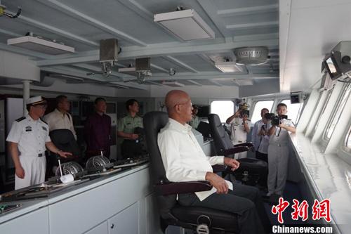 洛伦扎纳在中国海军539编队芜湖舰上参观 。海军539编队供图