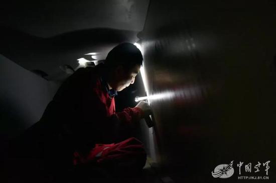 凌晨3时35分,随着最后一架战鹰稳稳降落,飞行员和机组们进行交接后,机务分队人员迅速对刚归来的战鹰进行“体检”。每个机组官兵明确分工,他们拿着手电筒照射战机每个部位,进行试电供油、查痕化验。