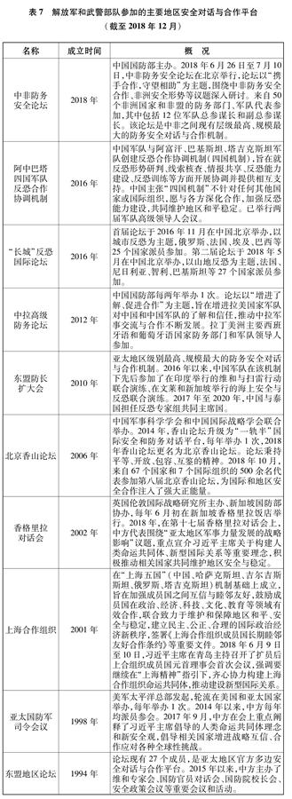 解放军和武警部队参加的主要地区安全对话与合作平台(截至2018年12月) 新华社发