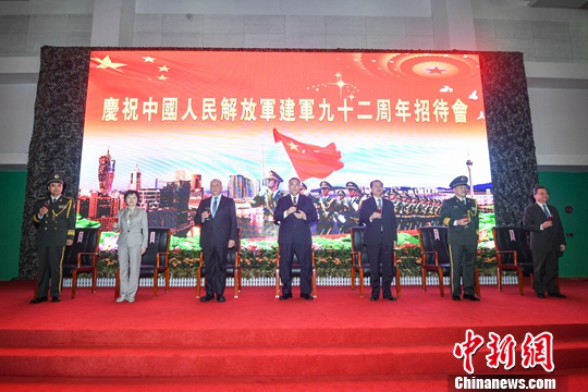 中新社澳门8月1日电 (记者 龙土有)8月1日上午,解放军驻澳门部队在新口岸军营隆重举行“八一”招待会,庆祝中国人民解放军建军92周年。