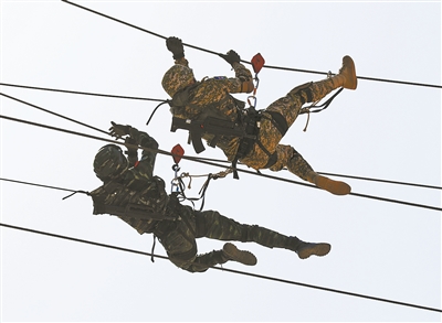 “境内外暴恐团伙勾连聚合,在边境地带建立营地,预谋发动暴恐袭击……” 13日10时许,随着指挥部一声令下,中吉联合特战分队搭乘直升机、突击车直扑目标区域,一场边境联合清剿战斗打响。记者看到,4架直升机抵达目标区域后,联合特战队员快速索降到楼房顶端,狙击手迅速占据制高点,形成封控态势。