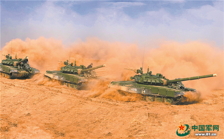 9月16日午后,辽阔无垠的卡普斯京·亚尔靶场上,演习临战训练正在开展。地面滚滚铁流卷起漫天沙尘向预定地域发起冲锋,空中作战飞机携带精确制导武器向地面预设目标发起多轮突击。