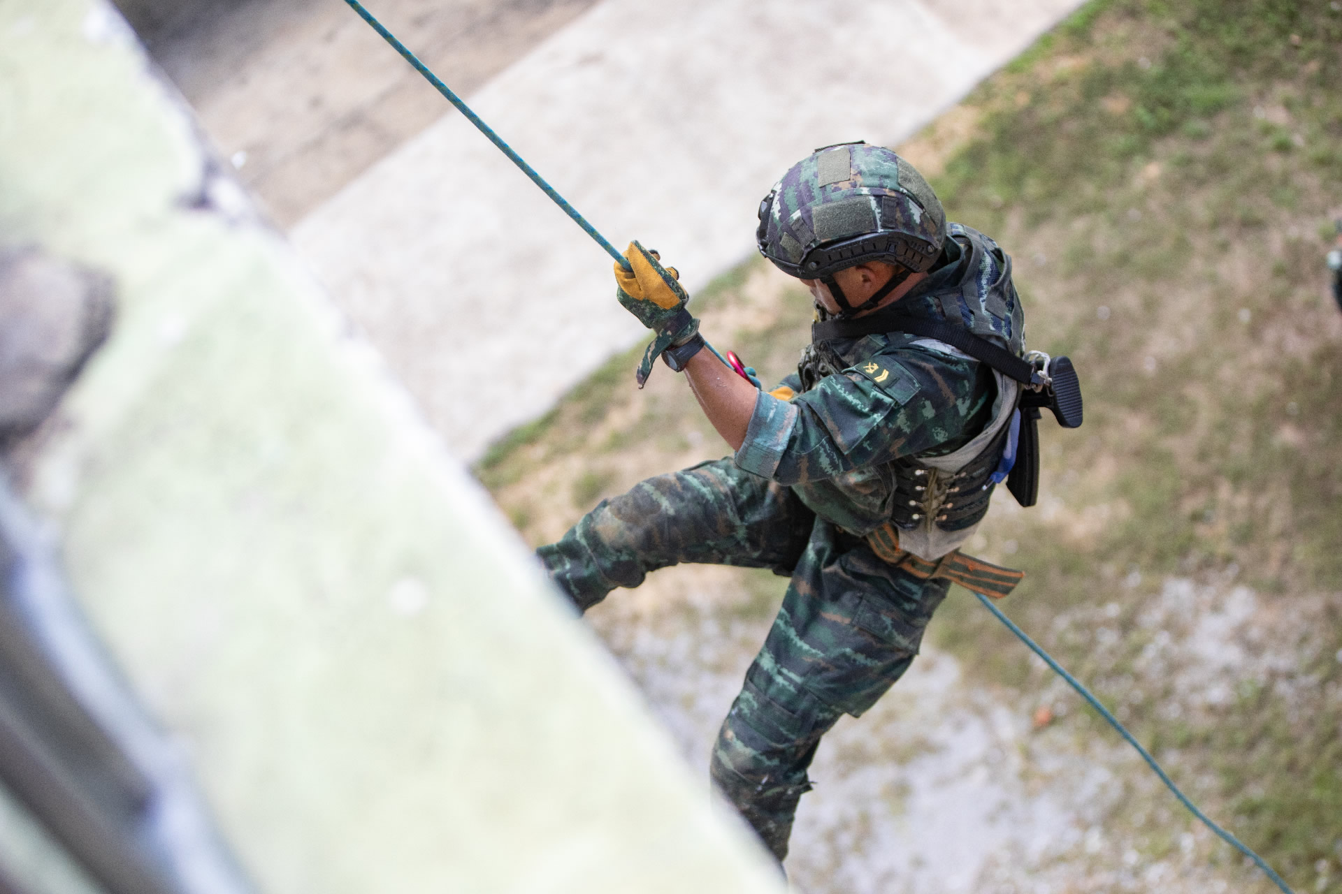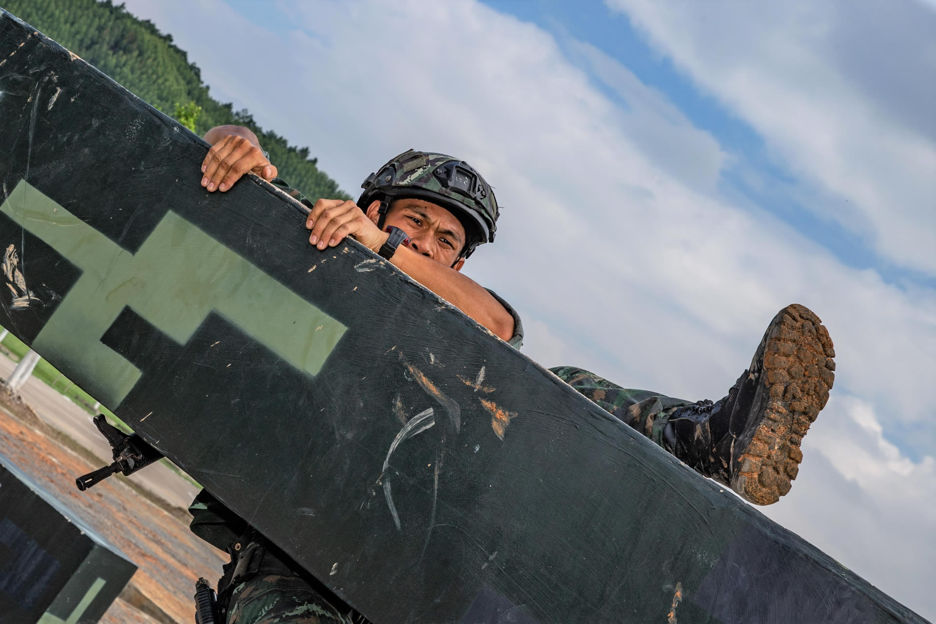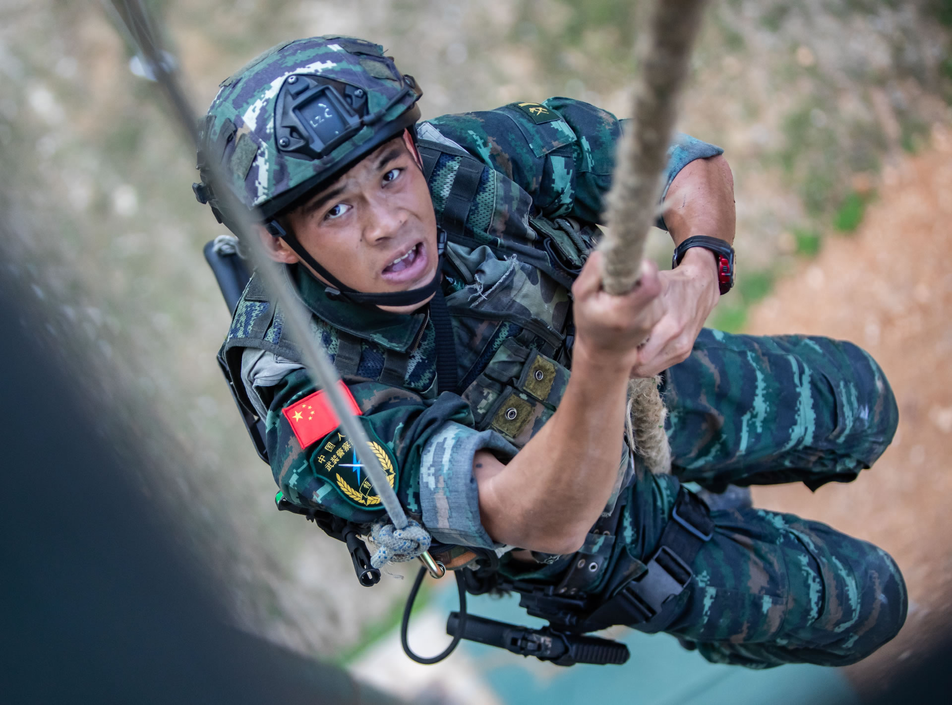 连日来,武警部队“巅峰-2020•广西总队”特战侦察比武在广西来宾市某演训场激战正酣。9月22日,个人全能课目比武全面展开,该课目采取单兵综合演练的形式,将攀登、搏击、射击等基础技能与突击、侦察、救护等专业技能相融合,参赛队员要先后完成十多项实战化竞赛内容,全面检验特战队员的单兵技战术水平与综合实战能力。