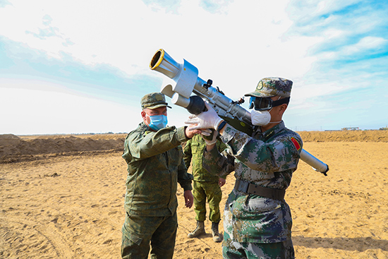 这是一次成建制使用外军装备的探索尝试。武器装备对于军人而言,其重要性不言而喻。演习前,中俄双方达成共识,我军参演部队可按演练作战编成和作战任务,使用俄军的坦克、步战车、装甲输送车、防空导弹等武器装备。于是,参演部队抵达第二天就接装训练、第三天就参加全流程合练、第四天就进行多弹种实弹射击。中方官兵操作使用武器装备的学习热情、专业素养,得到了俄军高度认可。当问及我军官兵为何能快速掌握俄制装备操作要领时,官兵们回答:苦练加巧练。苦练,是面对漫天风沙,我军参演官兵仍然趴在坦克上学习、扛着防空导弹训练;巧练,是部队出征前,他们已对相关理论知识展开学习研究。