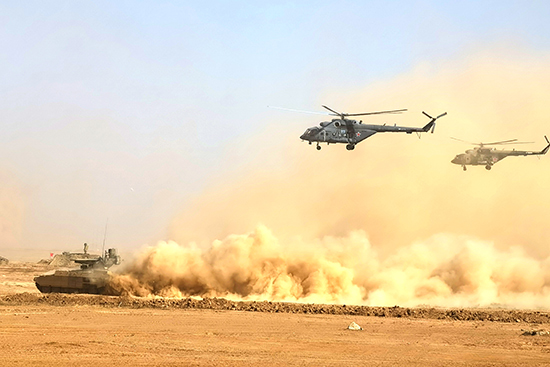 这是一次现代防御反击战的提前预演。外行看热闹、内行看门道。实兵行动演练中,担任俄语翻译的军事科学院李抒音研究员就看出了门道。在她看来,俄军在演练中充分发挥机动快、火力强、协同效率高等特点,短短45分钟时间,就出动了多个作战群、演练了上百个课目,充分展示了其捍卫国家安全和打击国际恐怖组织的能力。置身现场,面对实兵行动演练中出现的新武器、新系统、新弹药,中方参演部队官兵作为参与者、见证者,对未来防御反击作战的战场环境、战法运用、协同要点等方面,也都有了许多新认识。