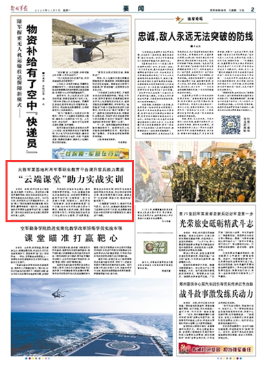 导弹部队对官兵专业理论、操作技能等要求较高。为此,该基地党委机关经调研论证,决定依托军事职业教育平台打造“云端课堂”,助力官兵能力升级、加钢淬火。他们抓住“加快操场、战场对接转换速度”这个关键,结合岗位采取分级分层学习模式,逐级逐人组织训练,紧盯短板弱项集中发力;将紧贴值班任务的多门专业课列为必修课,开设微课堂,提高官兵实战本领;依托平台兵棋系统和网络对抗系统,突出综合研判等方面,强化指挥员能力训练,探索走开“主官讲解、课堂示范、随堂检验”教学路子。