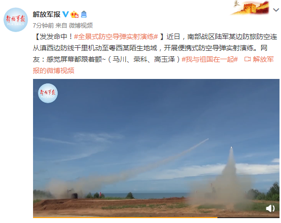 近日,南部战区陆军某边防旅防空连从滇西边防线千里机动至粤西某陌生地域,开展便携式防空导弹实射演练。网友:感觉屏幕都跟着颤~(马川、荣科、高玉泽)