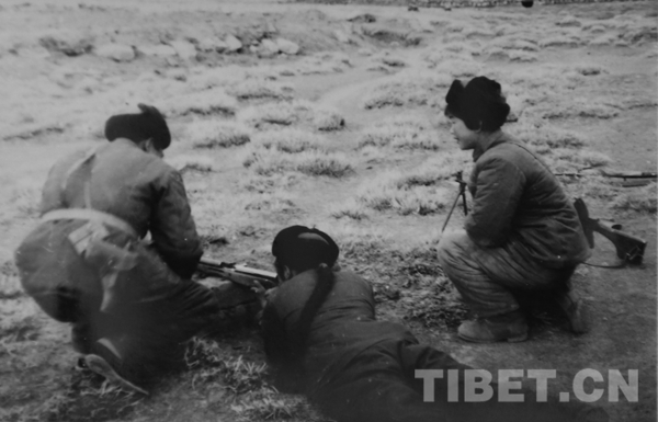 图为西藏文工团老照片:女文工队员也很喜爱射击 图片由王勉之提供