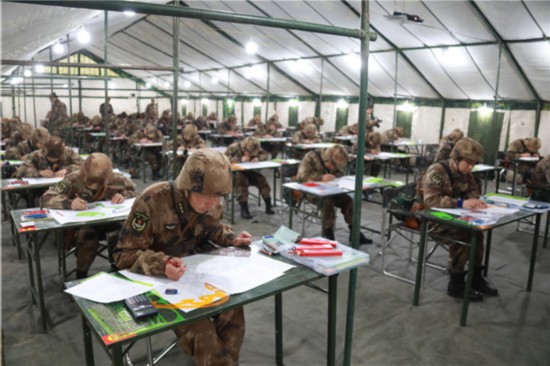 在比武现场,记者看到,“铁人三项”考核,官兵要连贯完成单杠引体向上、5公里武装越野、自动步枪100米精度射击3项内容。步枪三姿实弹射击,官兵不仅头戴防毒面具,还要穿越各种障碍区。识图用图考核,官兵须在陌生地域、限定时间内完成作业。