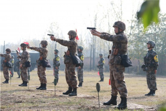 图为手枪射击比武考核现场。胡善雨 摄