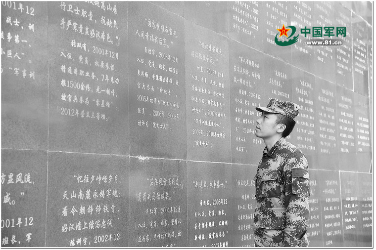仰望群“星” 谁的青春不曾迷茫?仰望别迭里好汉墙上的“英雄星”,排长刘岳琦再一次坚定了戍边信念。吕辰光摄