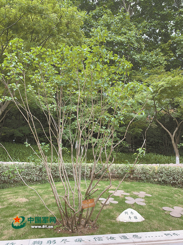 雨花台前,乐于泓亲手种植的丁香树枝繁叶茂。图片由南京雨花台烈士纪念馆提供