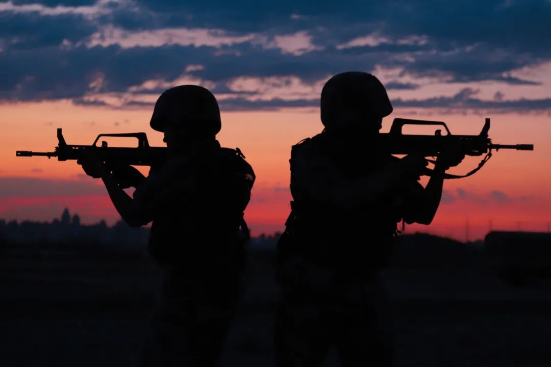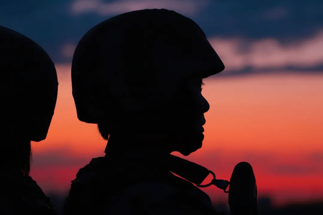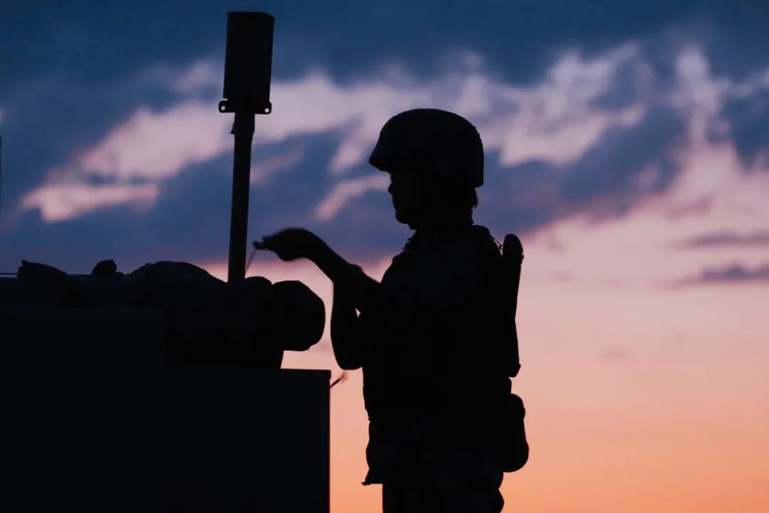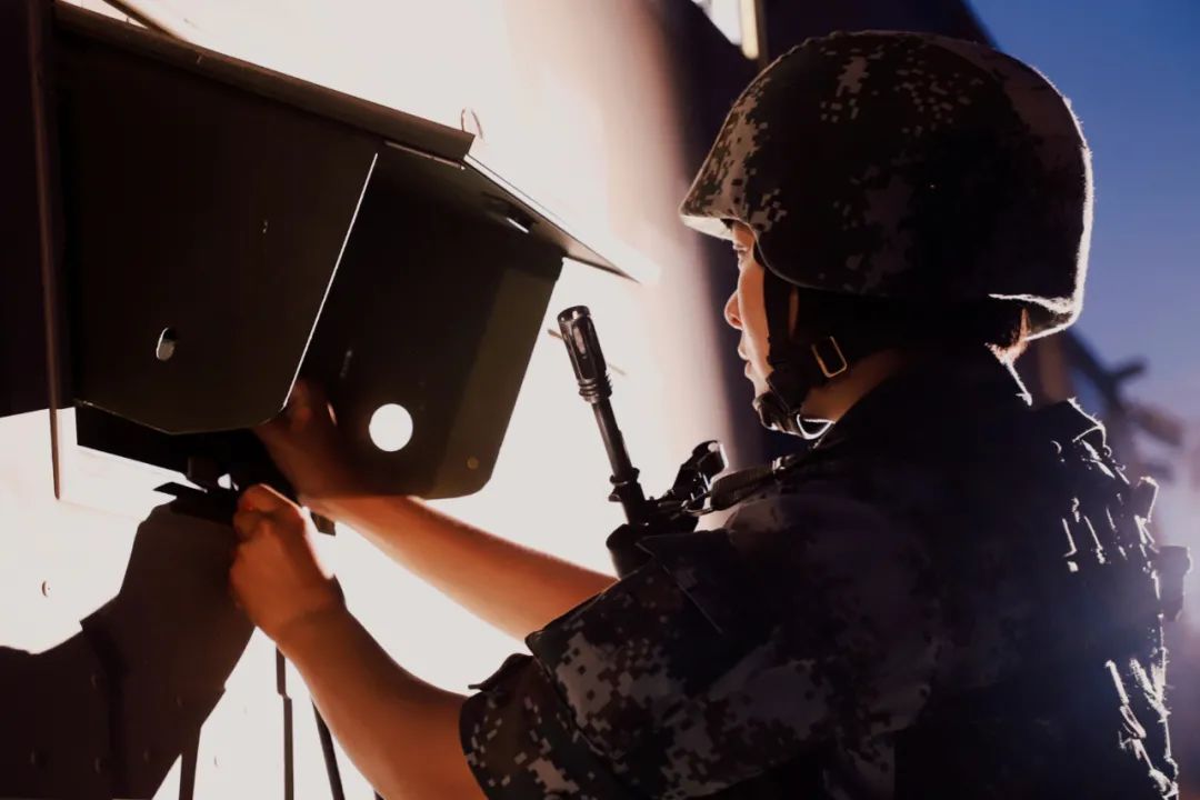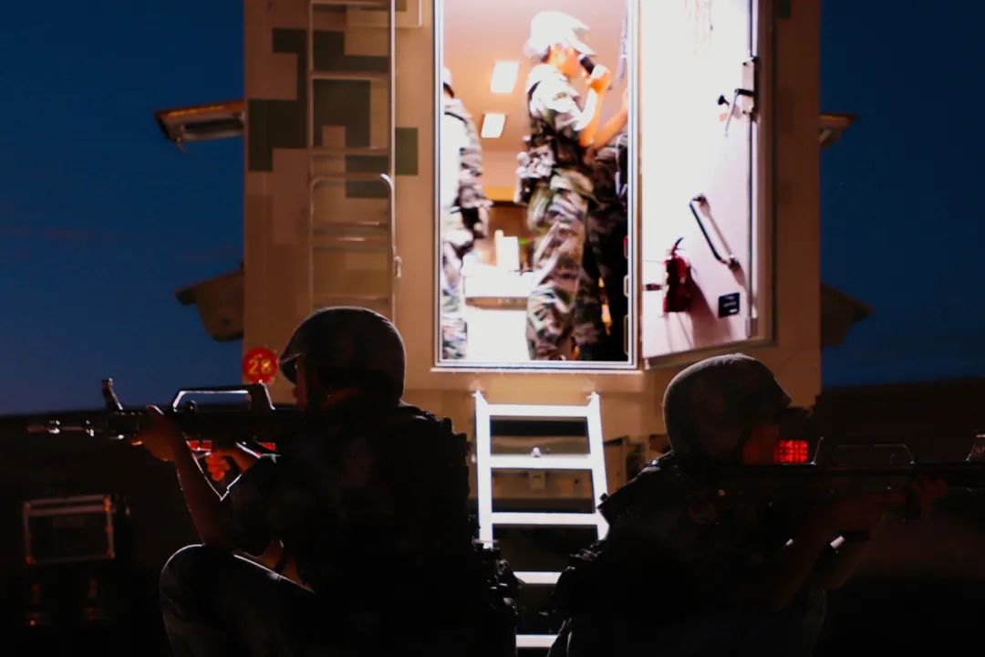 夜幕降临,女兵进行警戒