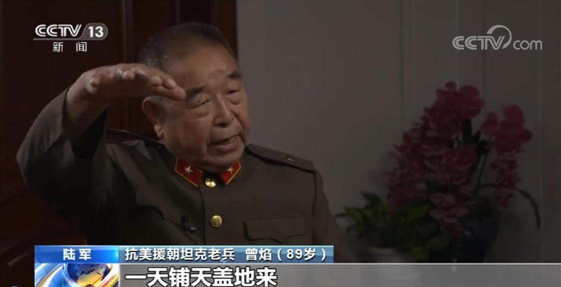 抗美援朝坦克老兵 曾焰:坦克一连走在前面,我是坦克一排,我在一排又在连队前面,我是一号车的车长,我是最前面的一个。但是敌人还是被发现了,发现了我在坦克外边,发现了他就打飞机上的机枪,哒哒哒,打到坦克上,跳出火花差一点就呜呼了,死了也就不知道了。