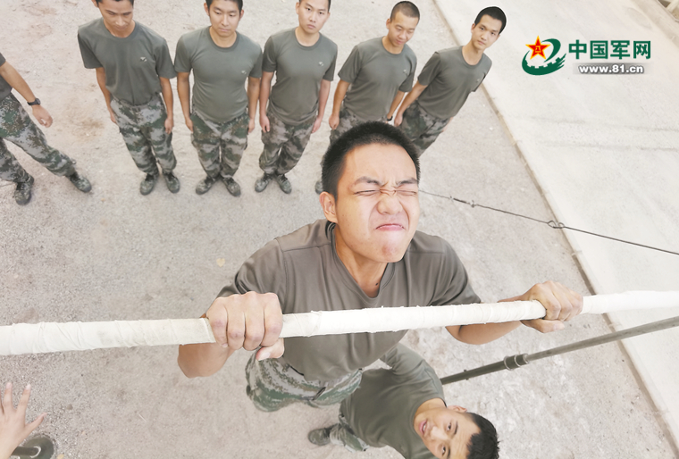 在新训骨干指导下,新战士正在开展引体向上训练。王东坡摄