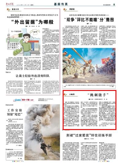 一番谈话结束,姚鹏很快又变回了那个“啥都敢说”的“挑刺能手”。前不久,营里组织战备演练,他手脚利索动作连贯,嘴上也忙得不行:“登车途中,跑步动作标准、步伐不紧不慢、口号响彻云天,不像打仗像会操……” “又来了,你这会儿挑刺,不是给营长上眼药吗?”演练中,姚鹏话头虽然被战友打住,但最终还是被人传到了复盘会上。本以为要迎来“雷霆之怒”,不承想营长李强不怒反喜,当众表扬姚鹏。自此,战备演练行进途中没有了“一二一”,只有迅疾行动快速出击。