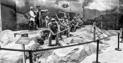上图为志愿军挖战壕的群雕塑像。资料照片