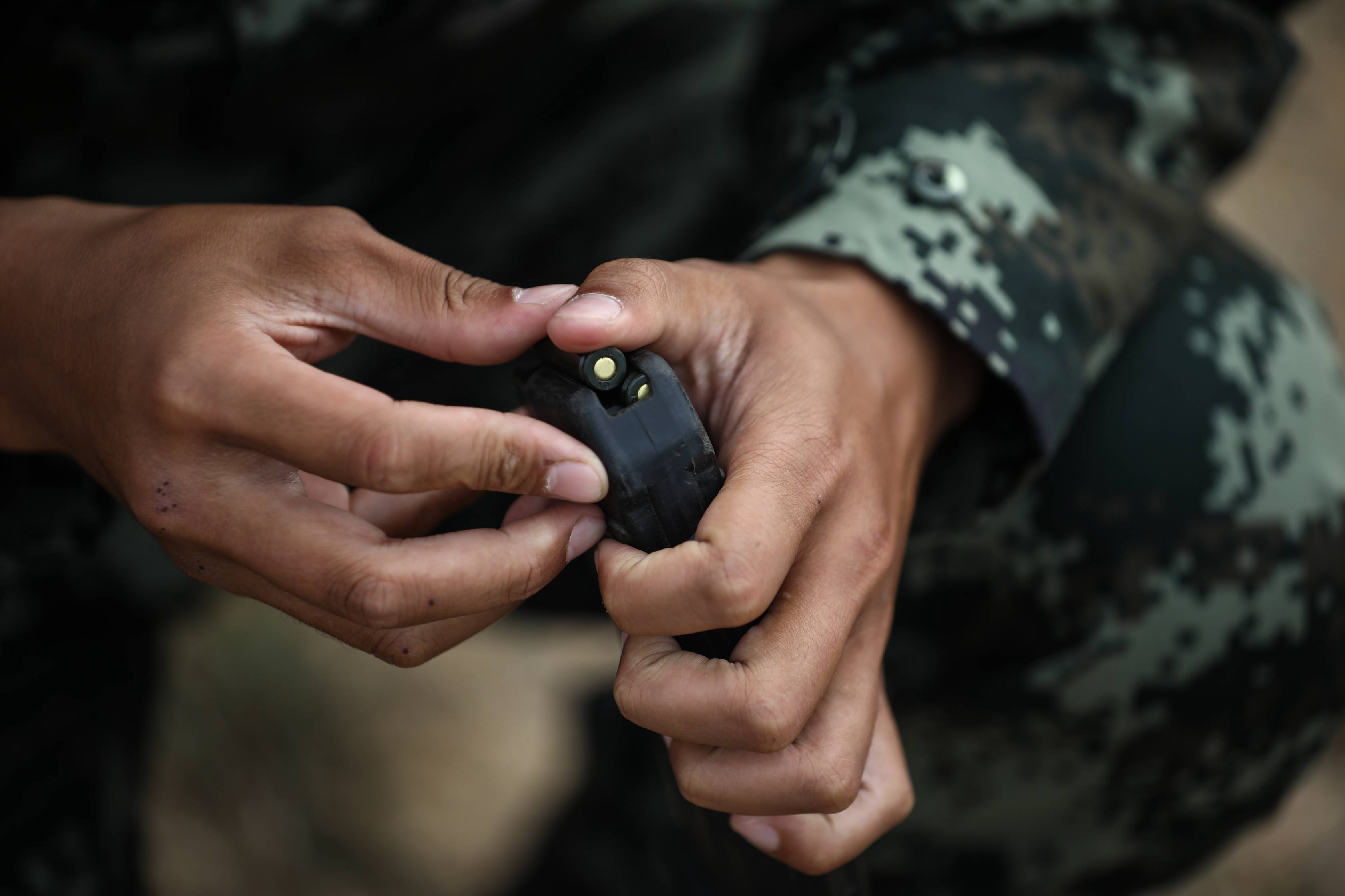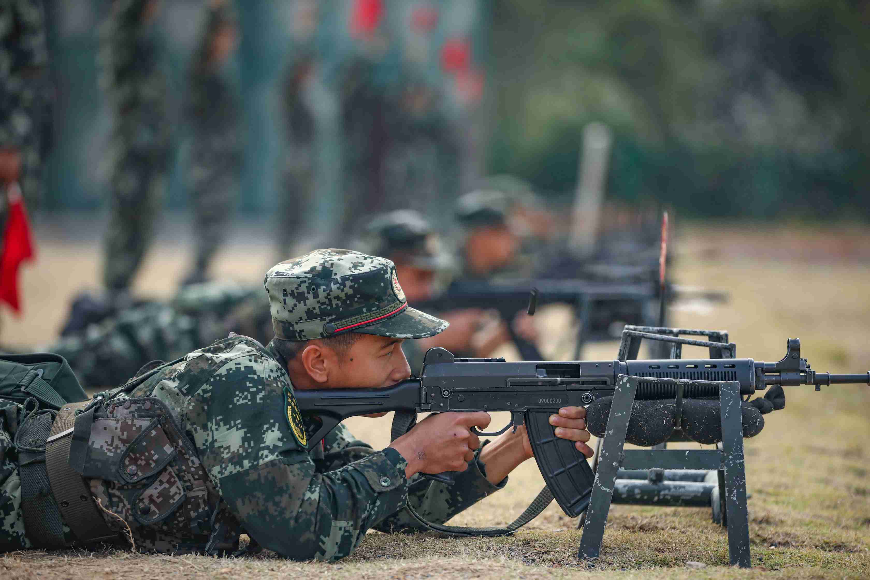 “卧姿装子弹!”随着现场指挥员的一声令下,新兵迅速卧倒、子弹上膛、瞄准射击。11月19日,武警广西总队防城港支队承训点组织新兵进行首次实弹射击。