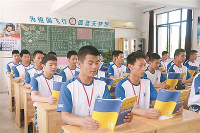 江苏南通中学空军青少年航校的学员们在校内生活学习。 蒋卫星摄
