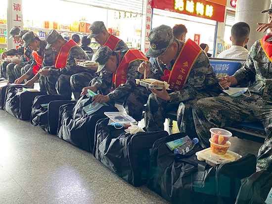 “你们这25元的标准可真实惠。刚才接兵干部跟我说,他已经连续3年接兵了,这是他见过的最好的保障餐!”淄博军分区负责送兵协调的参谋石少帅竖着大拇指夸赞军供站工作人员。