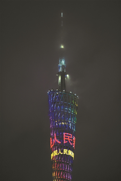 8月1日晚,广州塔亮起“爱我人民爱我军—热烈庆祝中国人民解放军建军93周年”宣传标语。广州日报全媒体记者杨耀烨摄(资料图片)