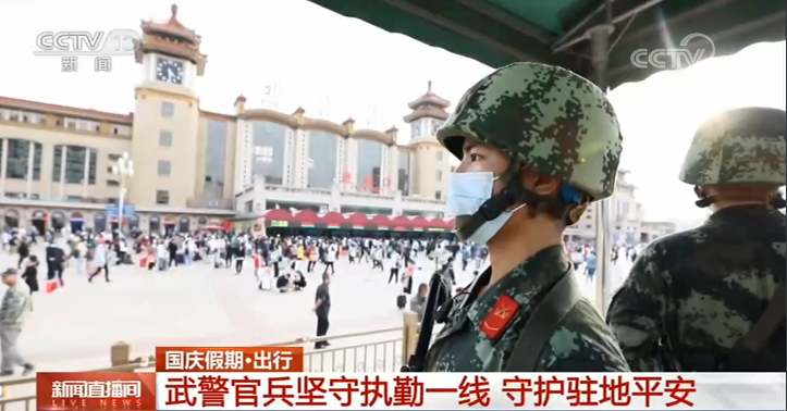 央视网消息:假日期间,各地游客数量大大增加,车站、机场迎来了出行高峰,驻地武警官兵坚守执勤一线,全时在位保障群众出行。
