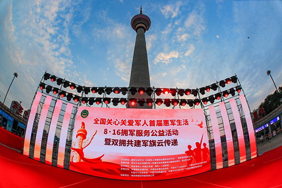 8月15日晚,中央电视台文化广场灯火璀璨、旌旗招展。8·16拥军服务公益活动暨双拥共建军旗云传递活动在激扬的军歌和庄严的仪仗兵迎军旗仪式中拉开序幕。据悉,活动由国家相关部委和军队指导支持,中国国防交通协会、中国生产力促进中心、中国汽车改装协会等15个行业协会友情协助举办,百余家央(国)企参与。