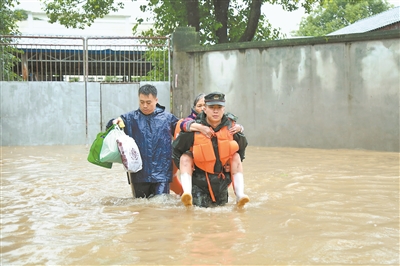 受暴雨影响,绵阳市安州区塔水镇出现洪水倒灌险情,武警绵阳支队官兵携带救生器材前往紧急救援。