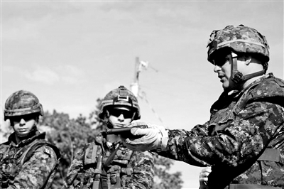 上图:比利时军人使用“勃朗宁大威力手枪”。 资料图片
