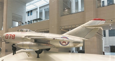 在中国人民革命军事博物馆兵器馆里,陈列着一架编号为079的银灰色战鹰,它就是著名战斗英雄王海驾驶过的米格-15歼击机。