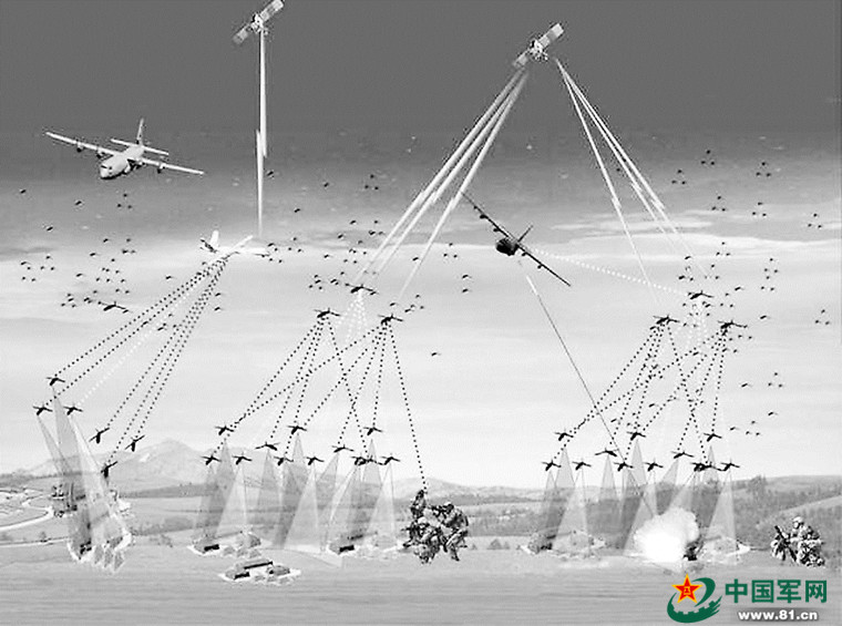 美军无人机蜂群作战示意图