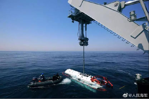 房兵:双方的救援船互相救援。比如说中方的“海洋岛”号潜艇救援舰,救援的是俄方参演的一条潜艇,而俄方的一条潜艇救援船救援中方一条参演的潜艇。大家听明白这个意思没有?中方来救俄方,俄方来救中方。大家说这不像反潜作战,不是作战科目,但不要小看这样一个科目。这种救援的科目,是其中一方处于险境的时候另一方去拉一把,被救方信任援救方,敢把所有的身家性命交给援救方,想想看这是一种什么样的信任感。