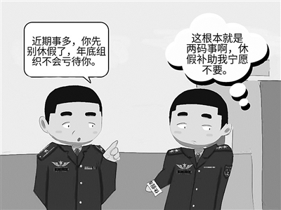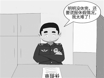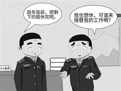 究其原因,有的单位人手少、任务重,尤其是关键岗位、特殊岗位,专业性强、要求高,只有个别人才能胜任,导致单位让休、个人想休,却“有假不能休”。有的单位虽然要求强制休假,但休假者无人顶岗,最后的结果或被中途召回或自己提前归队,造成“有假休不完”。有的单位由于任务繁重“有假不让休”,为了完成休假指标通过各种方式搞变通、打擦边球。还有的基层部队领导承诺立功受奖,让一些官兵主动放弃休假,或发放补助金,鼓励官兵少休假。更有甚者,强制填报虚假休假单,让“休假”变成了“假休”。