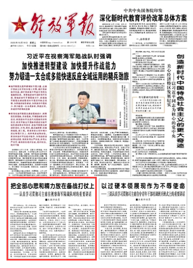 “要把全部心思和精力放在备战打仗上,保持高度戒备状态。”习主席在视察海军陆战队时的重要讲话,充分肯定了海军陆战队调整组建以来建设发展和完成任务情况,站在实现中国梦强军梦的战略高度,科学回答了加快海军陆战队转型建设带根本性、全局性、方向性的重大问题,对抓好备战打仗提出明确要求,立起了备战打仗的鲜明导向。