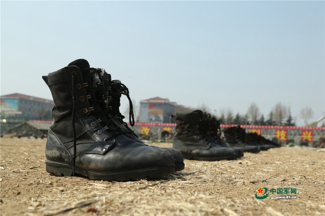 作战靴摆放整齐。