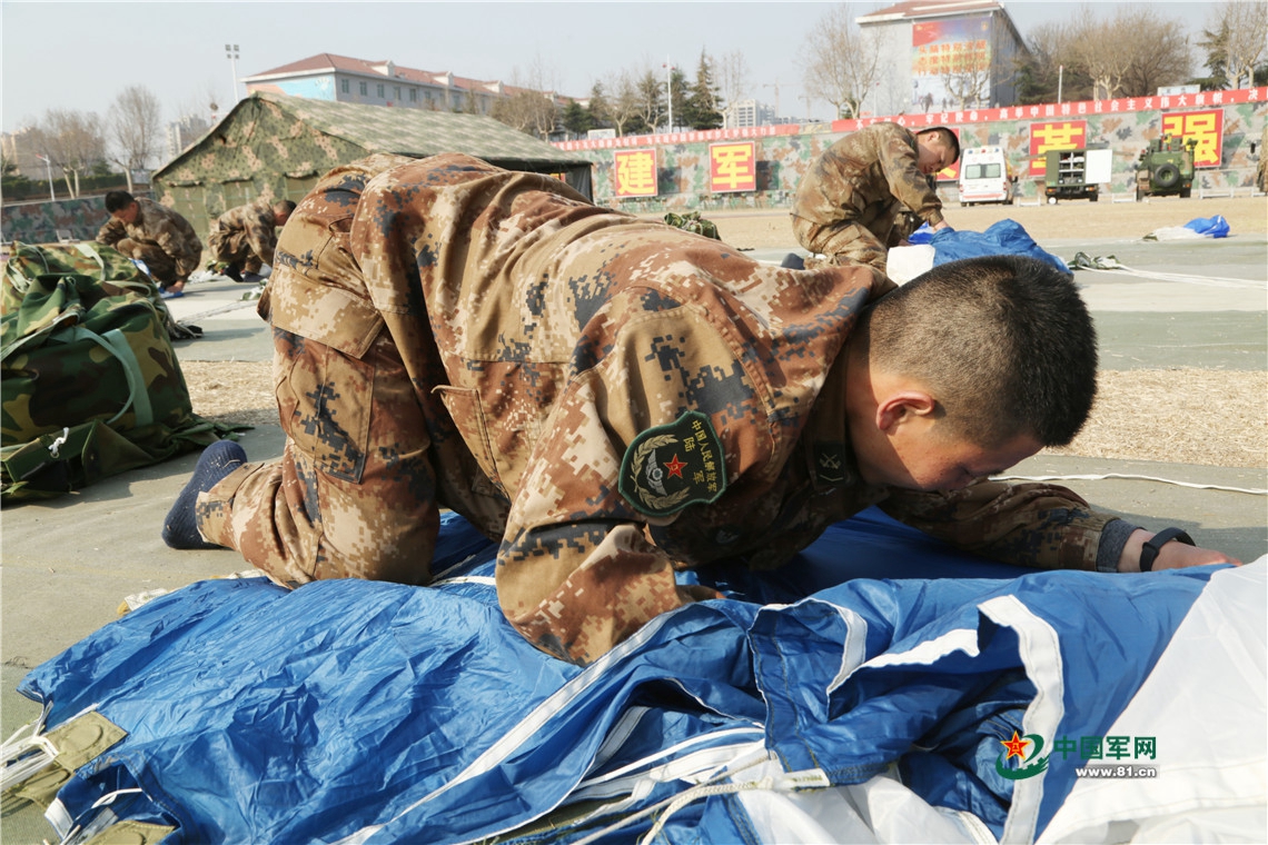 特种兵练跳伞 先把伞衣叠好再说(高清组图)
