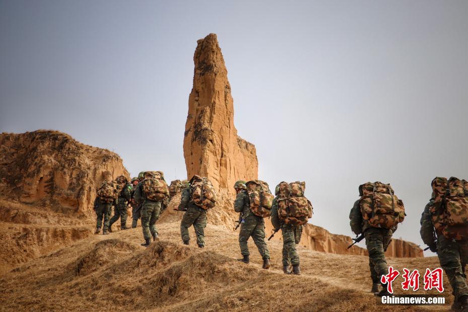 在长达7昼6夜的极限训练中,全体参训官兵在实战环境下摔打磨练、在艰苦条件下挑战突破极限,磨炼意志,练就“一举拿下、一锤定音”的过硬反恐制胜能力。图为参训官兵山地强行军。 曹正玉 摄