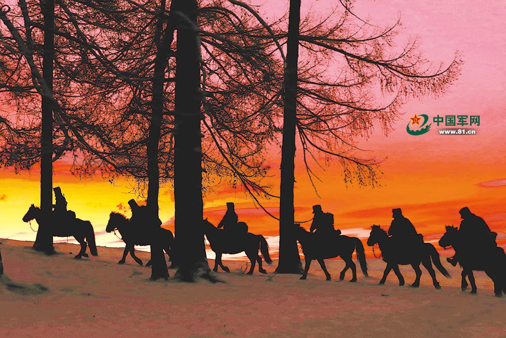 披着夕阳的余晖策马前行。