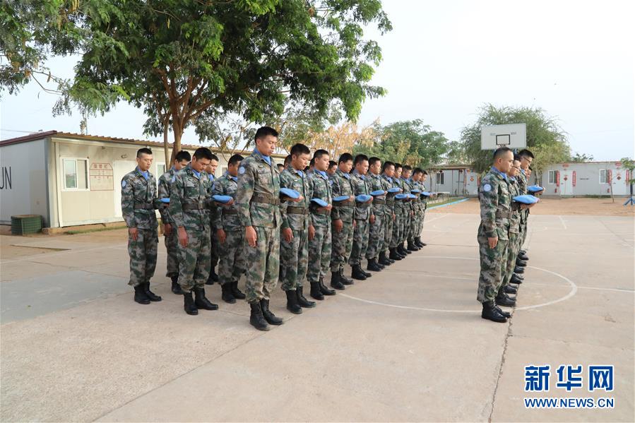 4月4日,在苏丹杜艾因,中国第14批赴苏丹达尔富尔维和工兵分队官兵举行“学习英雄事迹,缅怀维和英烈”祭奠仪式。中国第14批赴苏丹达尔富尔维和工兵分队官兵4日在苏丹三块任务区同时举行“学习英雄事迹,缅怀维和英烈”祭奠仪式,深切缅怀为维护世界和平而牺牲的维和战友。新华社发(沈博文 摄)