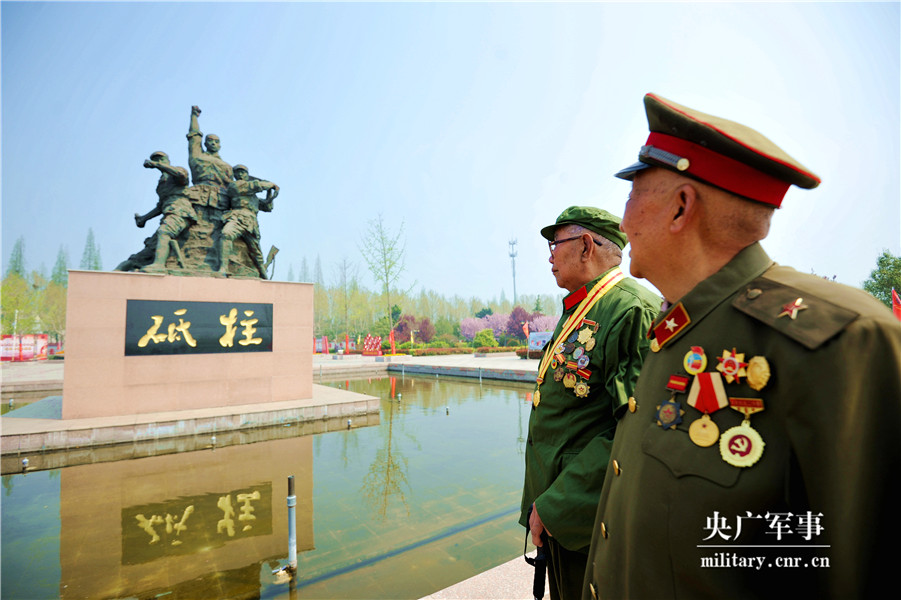在官兵们的搀扶下,张老和蒋老走进纪念园大门,来到烈士纪念碑前。八二医院的官兵代表为烈士纪念碑敬献花篮,两位老兵也庄重敬礼并献上鲜花。接着,大家一起参观了八十二烈士纪念馆。馆内,图片、半景画、电子地图、幻影成像、雕塑、实物、互动机枪等多种形式,展现了75年前那段可歌可泣的历史。