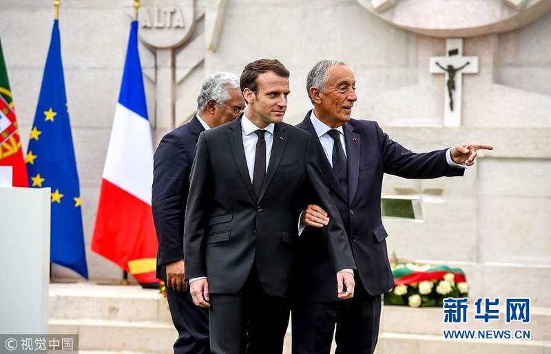 4月9日,法国里什堡,法国总统马克龙和葡萄牙总统马塞洛·雷贝洛·德索萨在一战葡萄牙公墓出席一战纪念仪式,纪念利斯战役百年。(图片来源:视觉中国)