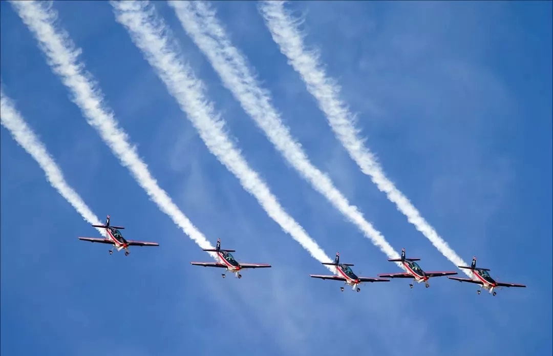 巴西空军飞行表演队拉烟表演。