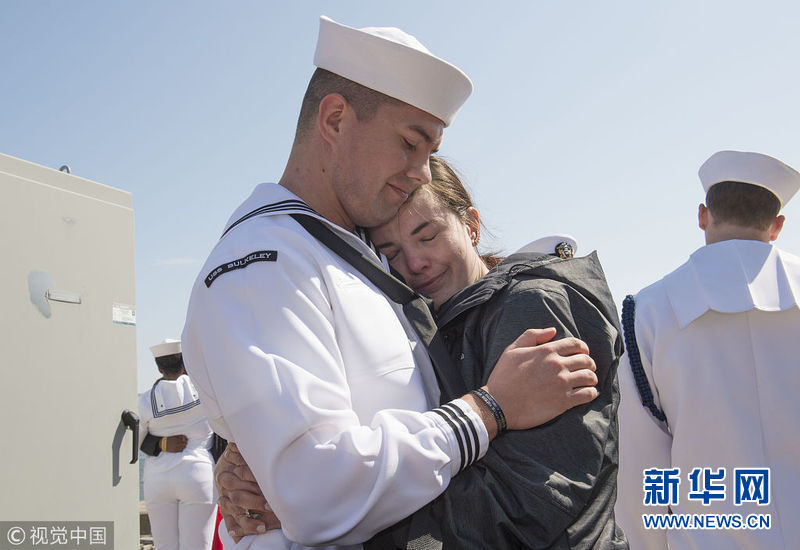 4月11日,美国弗吉尼亚州诺福克,“杜鲁门号”航母战斗群启航前往欧洲与中东地区。(图片来源:视觉中国)