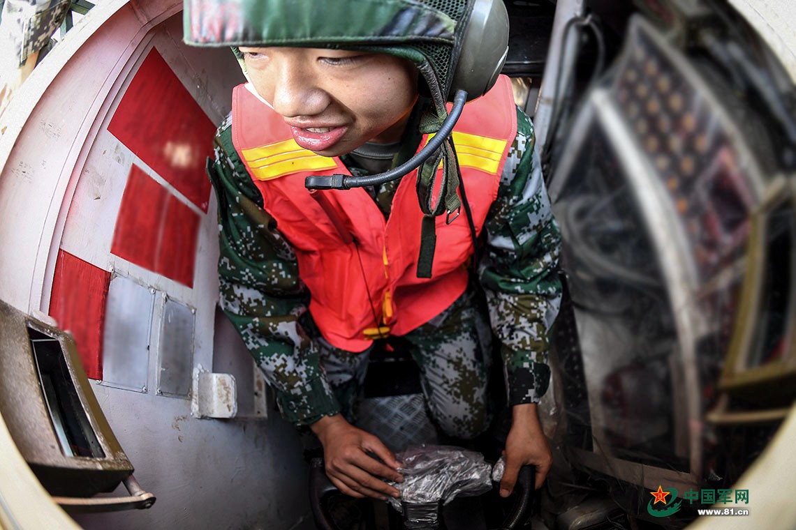新训坦克驾驶员在车上进行模拟海上驾驶训练。