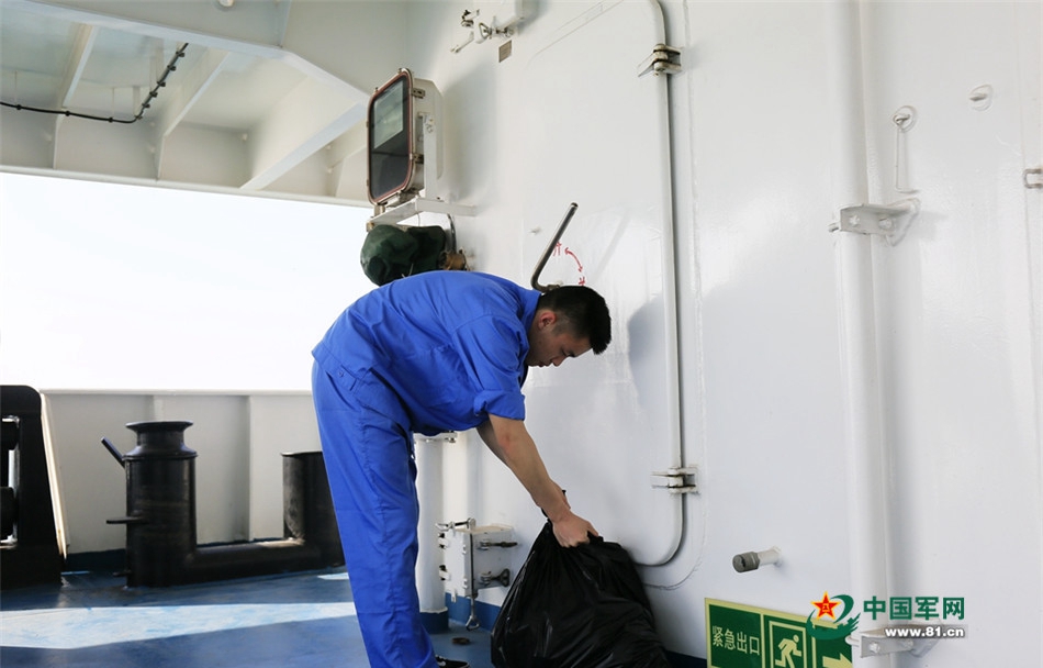 航行期间,帆缆岗位船员还要担负起垃圾回收等工作。