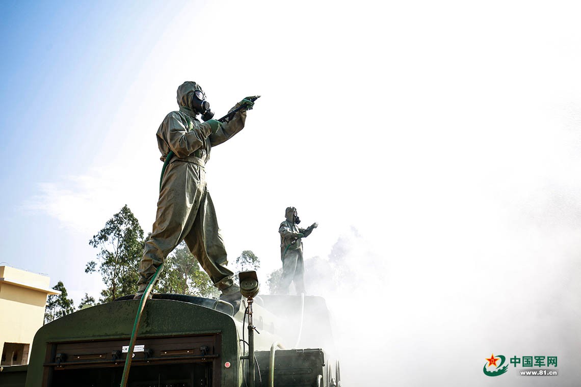 洗消员对目标区域进行洗消作业,降低有毒有害物质浓度。