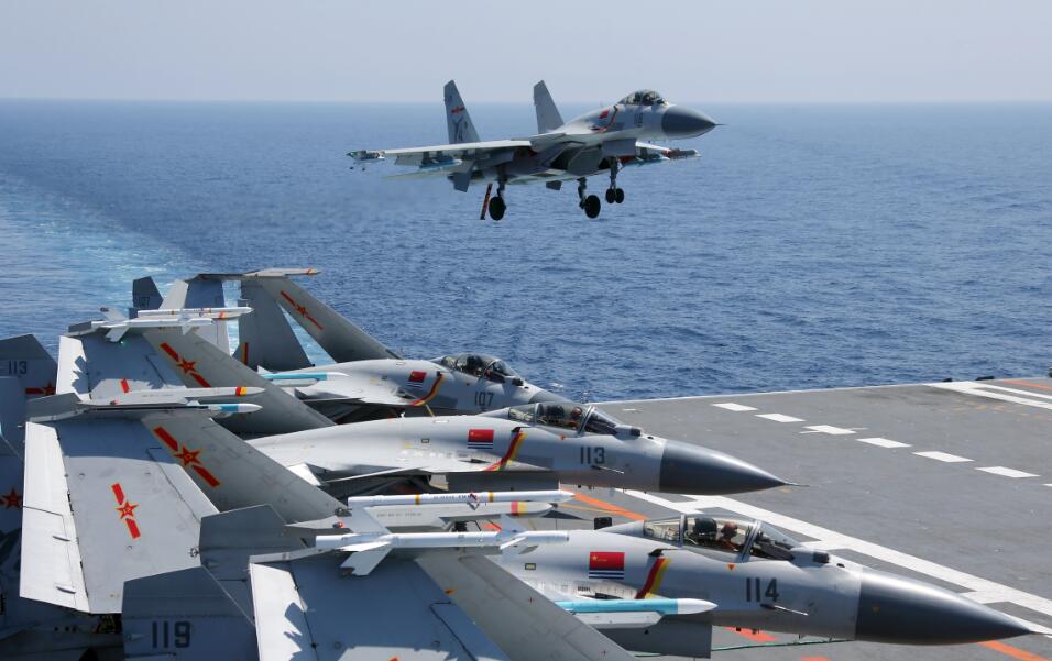 辽宁舰歼-15舰载战斗机和直升机轮番起飞、降落、加油、再次起飞,甲板上各岗位官兵紧张高效地保障舰载机的出动率。各属舰不断变换与保持防空、防潜、综合防御队形,高效担负各自任务,探索了航母编队远海作战体系构建和组织指挥方法。