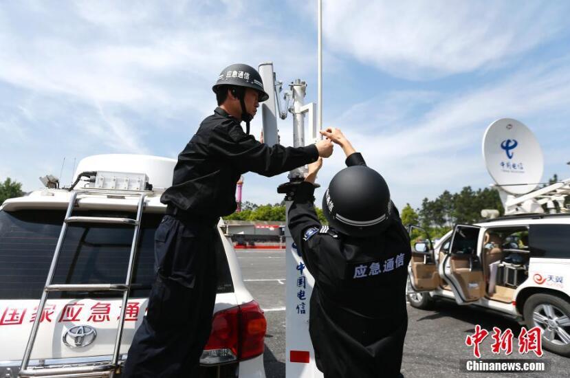 4月20日,“天翼神剑·联动2018”浙江省防灾减灾军地联合应急通信演练在杭州举行。参演队伍包括中国电信华东五省一市应急通信队伍、浙江省军区应急机动保障队等,共计出动各类应急通信装备138套、通信车辆31辆、参演人员120名。通过“前沿指挥系统搭建”、“应急救援通信保障”、“公众网络通信保障”三段演练,旨在提高军地联合防灾减灾通信保障能力,检验中国电信华东大区应急通信保障队伍联动机制、军地协作、快速响应以及跨省协同能力,增强军地保障队伍的责任感、使命感和团结协作精神。 中新社记者 富田 摄
