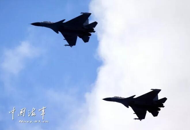 4月20日,海军辽宁舰编队在西太平洋,开展远海作战对抗训练。图为舰载机编队飞行。记者张雷 摄