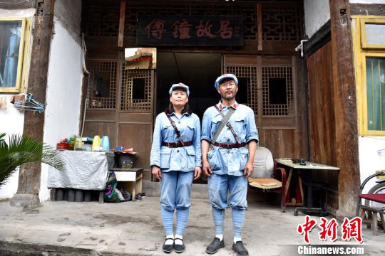 罗建华、丁啟梅夫妇傅钟将军故居留影。 邹立扬 摄